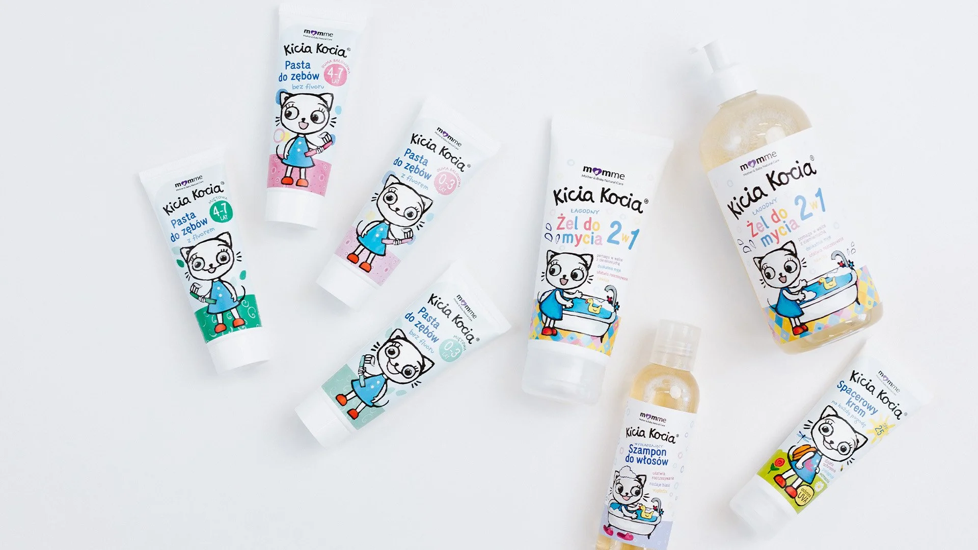 Packaging design for Momme brand that include well known children’s book character named Kicia Kocia. I was design directing this project. To development of this project was very rushed, and we have completed design works in one month, and then prepare files for print. The Range has 8 SKU’s in total.